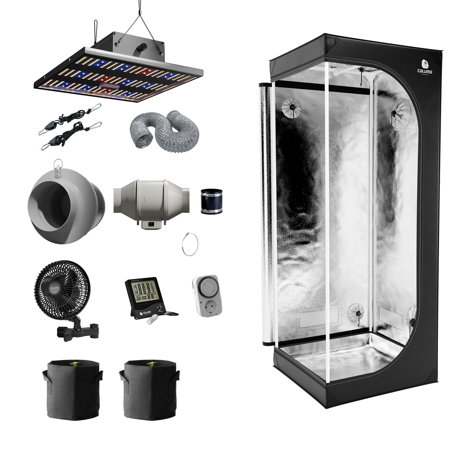 Home-Growing war nie so einfach. Alle Plug & Play-Komponenten von Caluma sind perfekt aufeinander abgestimmt und lassen sich schnell und einfach von dir allein aufbauen. Easy as 1, 2, 3.