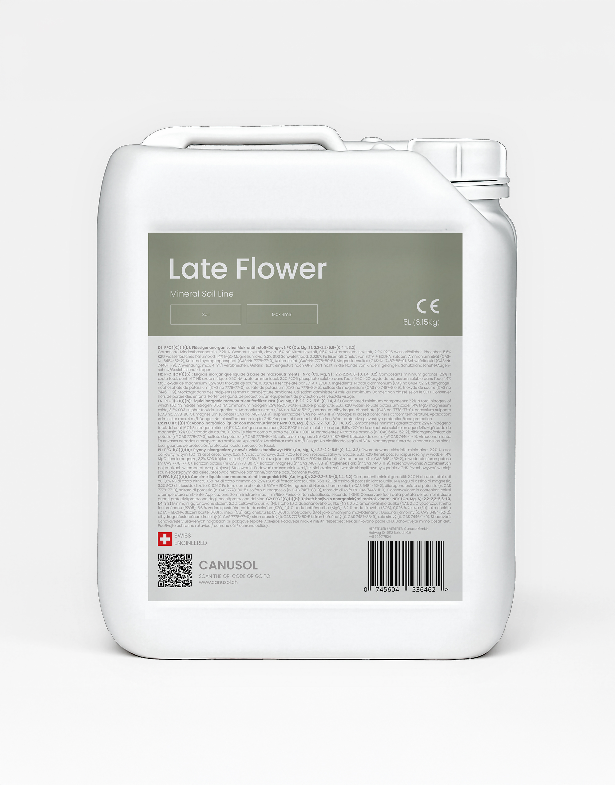 Late Flower ist deshalb die perfekte Wahl für alle, die im Erdanbau das volle Qualitäts- und Ertragspotenzial ihrer Pflanzen in der finalen Phase ausschöpfen möchten und dabei auf die gewohnte einfache Anwendung von Canusol zurückgreifen wollen.