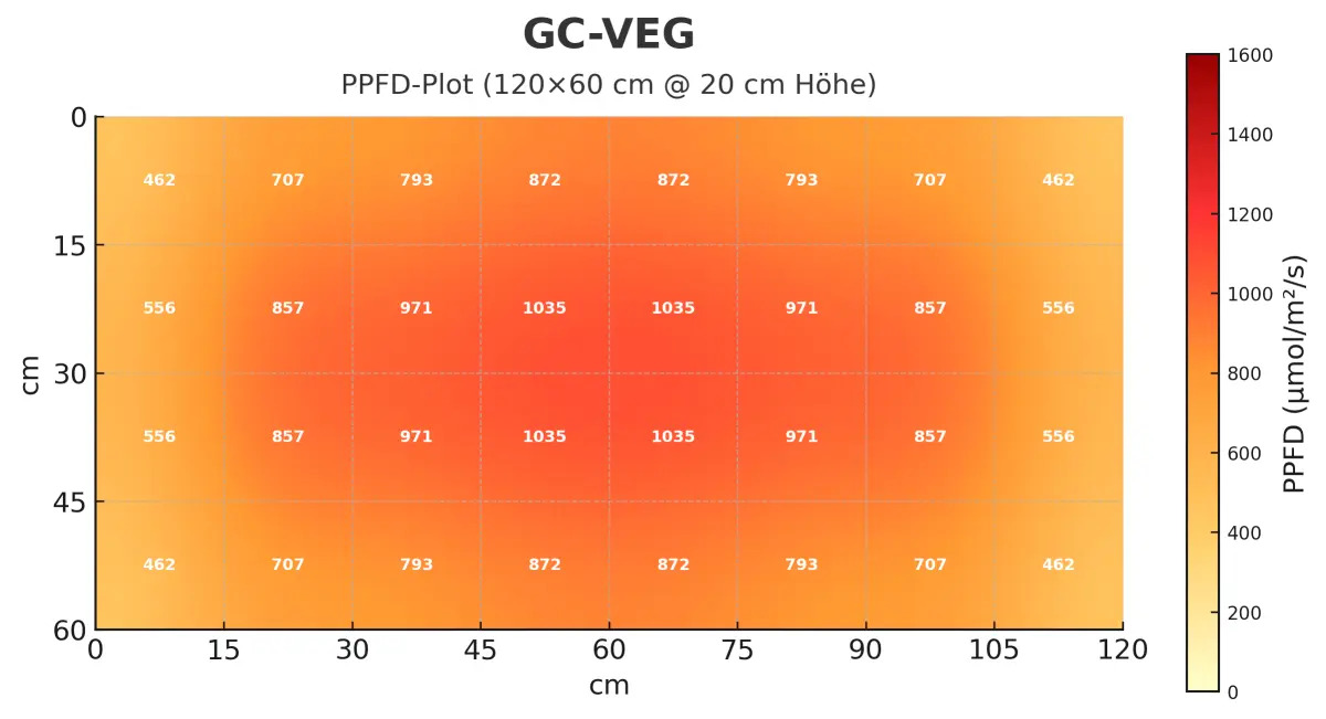Genau das liefern wir. Die GC-VEG ist mit hochwertigen, kaltweißen Chips von Samsung ausgestattet, sehr hochwertig verarbeitet und leicht zu reinigen. Sie ist für Feuchträume geeignet, produziert sehr wenig Abwärme (680 BTUs), lässt sich dimmen und auch in Gruppen verbinden (Daisy-Chain). Aufgrund ihrer flachen Konstruktion eignet sie sich für Zelte, Räume und Regale.
