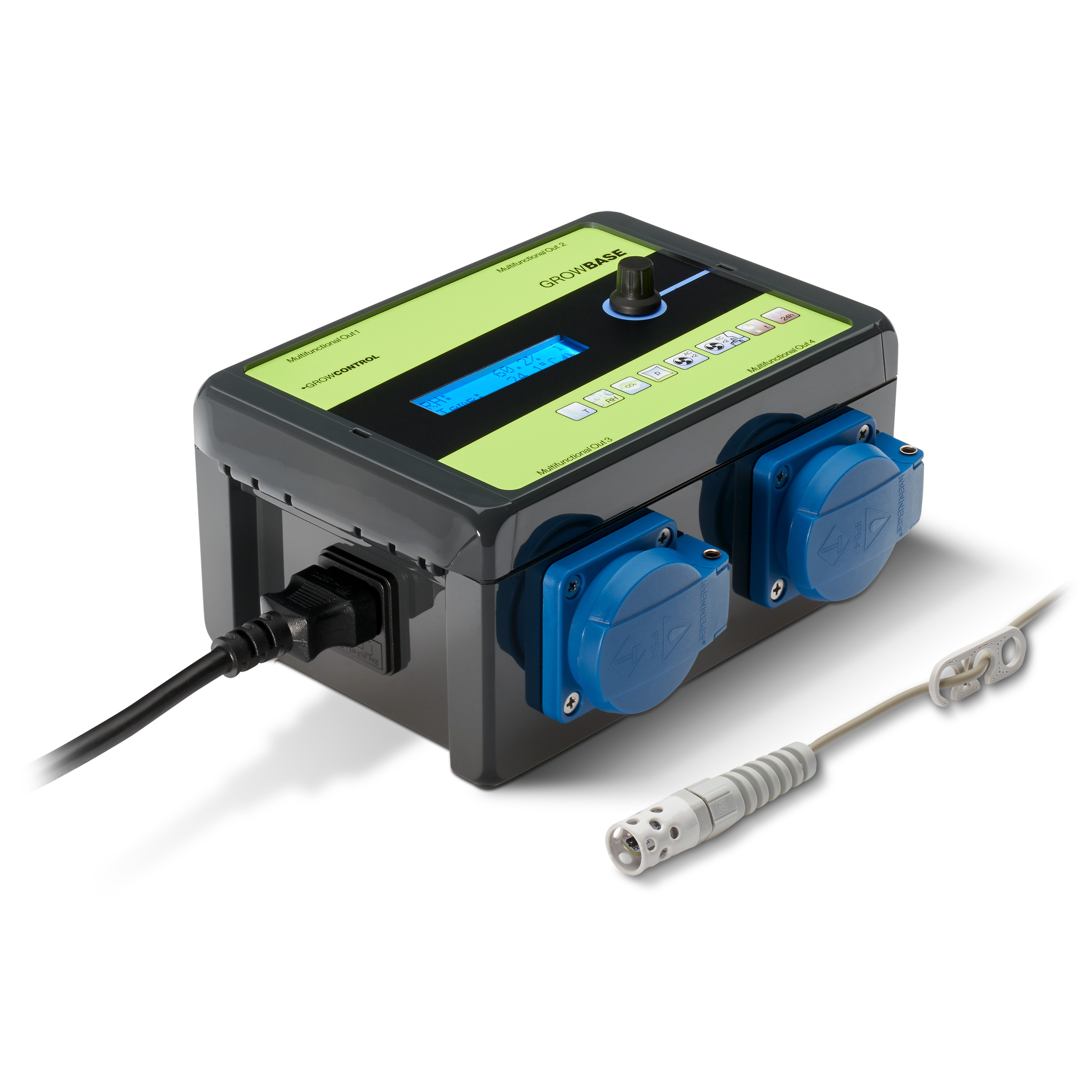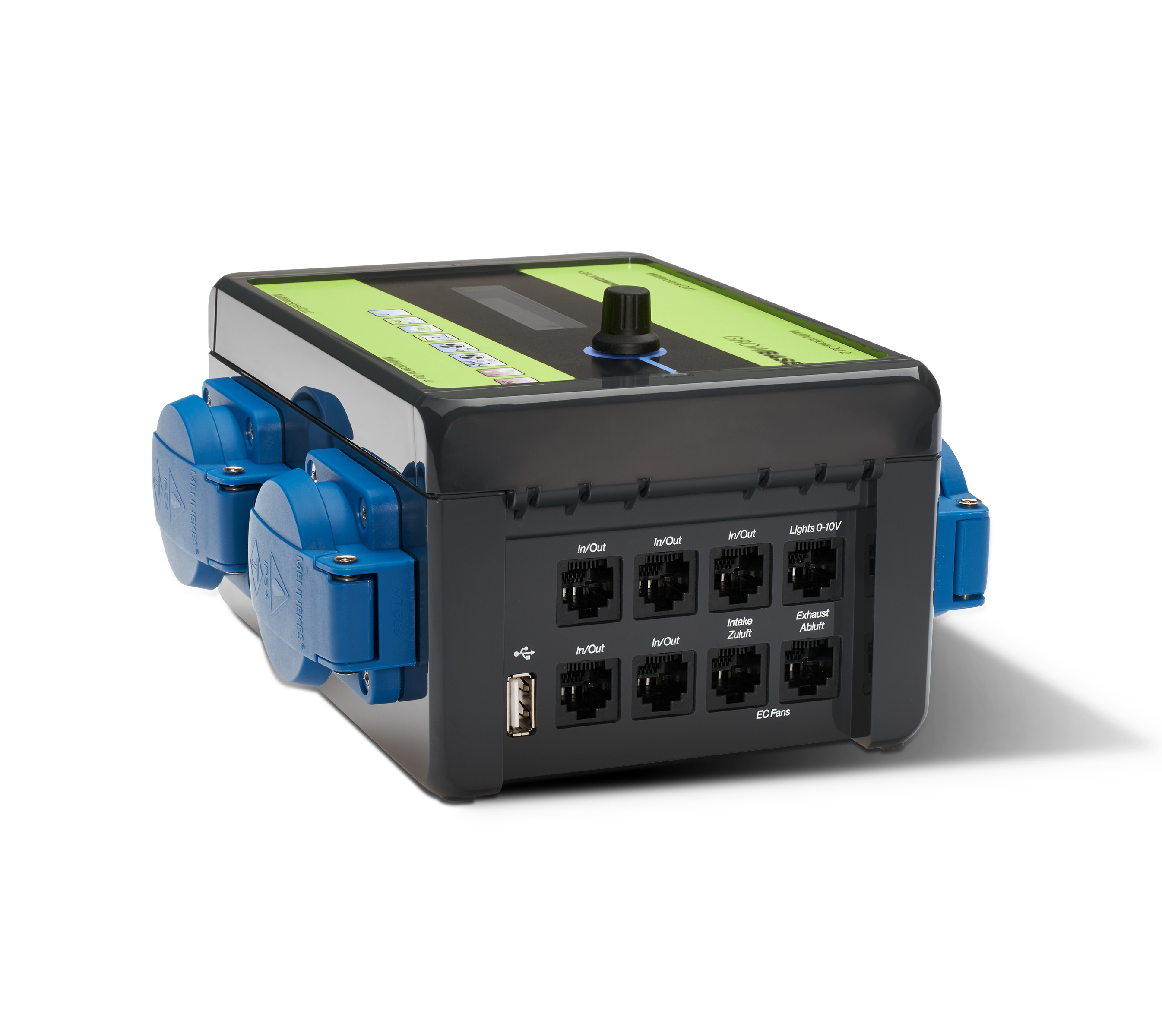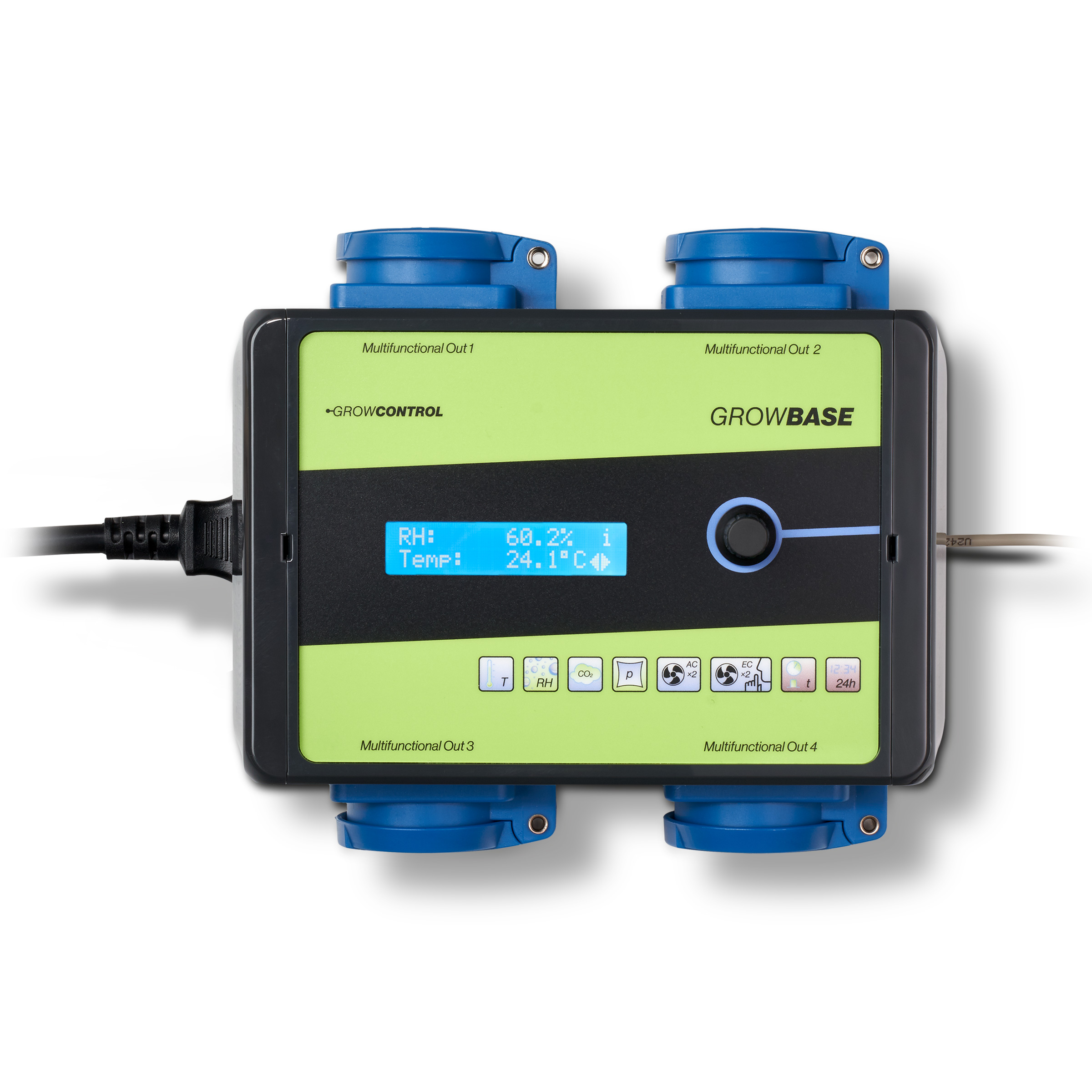 GrowBase ist die Schaltzentrale für den ambitionierten Indoor-Gärtner. Es können verschiedene Geräte und Sensoren angeschlossen werden. Die vier Steckdosen ermöglichen den Betrieb unterschiedlicher Geräte, da sie auf verschiedene Funktionen eingestellt werden können. GrowBase ist zur Ansteuerung von EC- und AC- Ventilatoren gleichermaßen geeignet. Damit ist höchste Flexibilität garantiert.