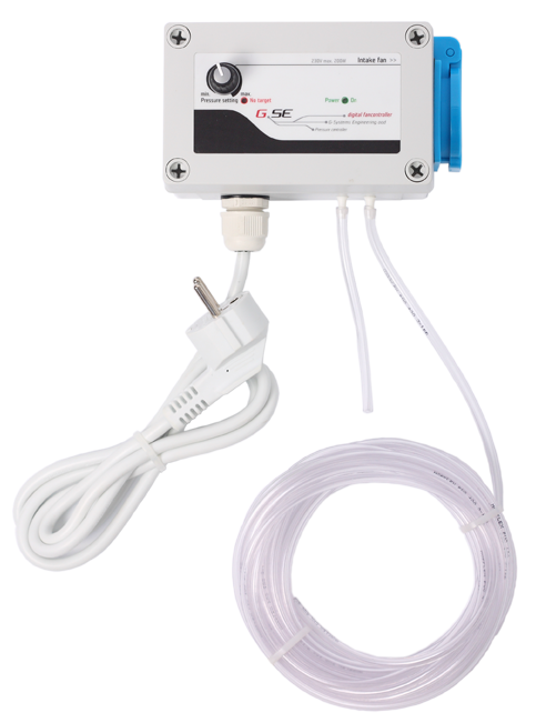 Der Druckregler ist ein druckabhängiger Drehzahlregler für belüftete Räume mit Zuluftventilatoren. Der Druckregler hält den die eingestellte Druckdifferenz konstant, unabhängig vom Abluftventilator und deren Ansteuerung. Damit verhindert der Regler ein Überdruck und das entweichen von Gerüchen durch Ritze, Spalten und kleinste Öffnungen. Die Druckdifferenz wird an einem Knopf eingestellt. Zwei LED zeigen die Funktion und Fehlerdiagnostik an.