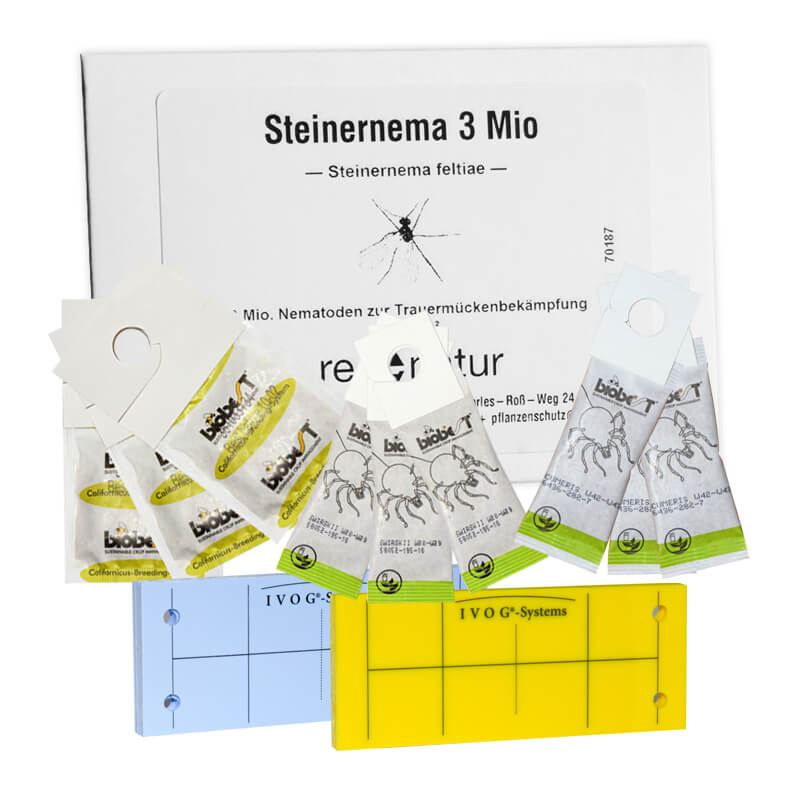 Die Raubmilben Amblyseius cucumeris, Amblyseius californicus und Amblyseius swirskii ernähren sich zusammen von Thripslarven und Spinnmilben. Auch Weiße Fliege und Weichhautmilben werden als Beute genommen. Die SF-Nematoden wirken gegen Trauermückenlarven.