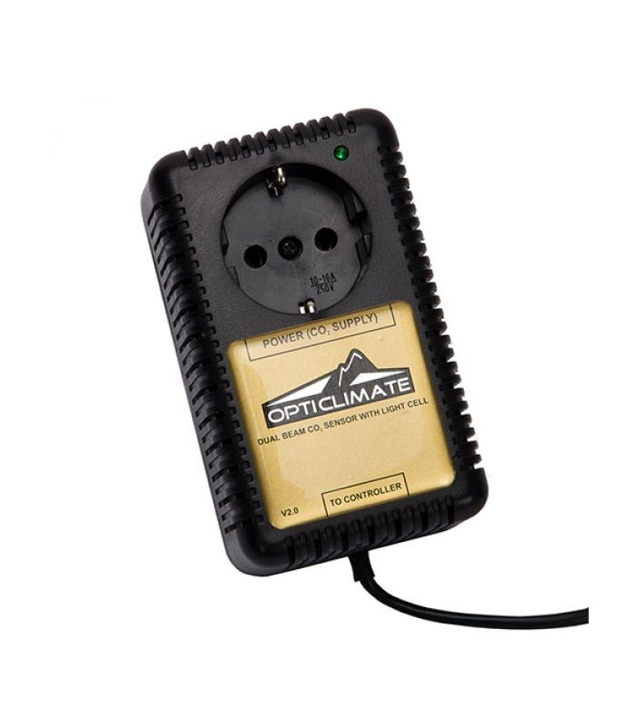 Separater OptiClimate CO2 Sensor der an einen DimLux Maxi Controller angeschlossen werden kann und einen CO2 Generator oder ein CO2 Minderungsventil steuern kann. Die Sensoren nutzen die Dual Beam NDIR-Technologie, die unvergleichliche Stabilität und Genauigkeit liefert. Weitere CO2 Sensoren mit Single Beam müssen regelmäßig kalibriert werden. Dual Beam Sensoren sind zwei Sensoren in einer Messung, wobei die Messfühler periodisch durch den zweiten Sensor eingestellt werden.
