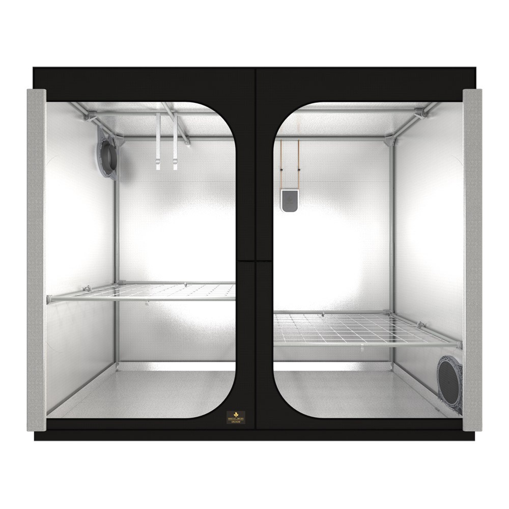 Professionelles Anbaugewächshaus aus dem besten reflektierenden Material. Die robuste Stoff- und 25 mm dicke Stangen verleihen dem Gewächshaus zusätzliche Stabilität und Widerstandsfähigkeit. Das Paket enthält viel nützliches Zubehör.