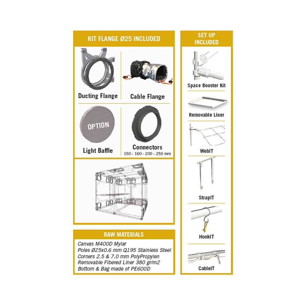 Professionelles Anbauszelt aus dem besten reflektierenden Material. Die stabile Stoffkonstruktion und die 25 mm starken Stangen verleihen dem Zelt extra Stabilität und Widerstandsfähigkeit. Das Set enthält viel nützliches Zubehör.