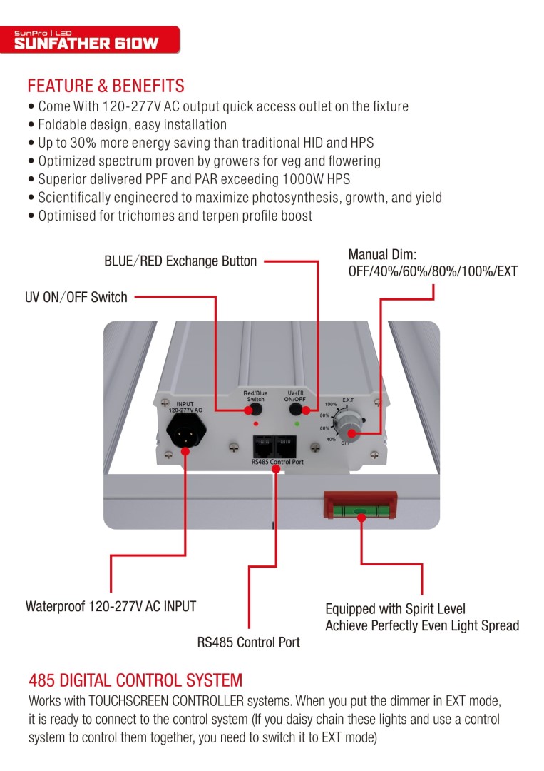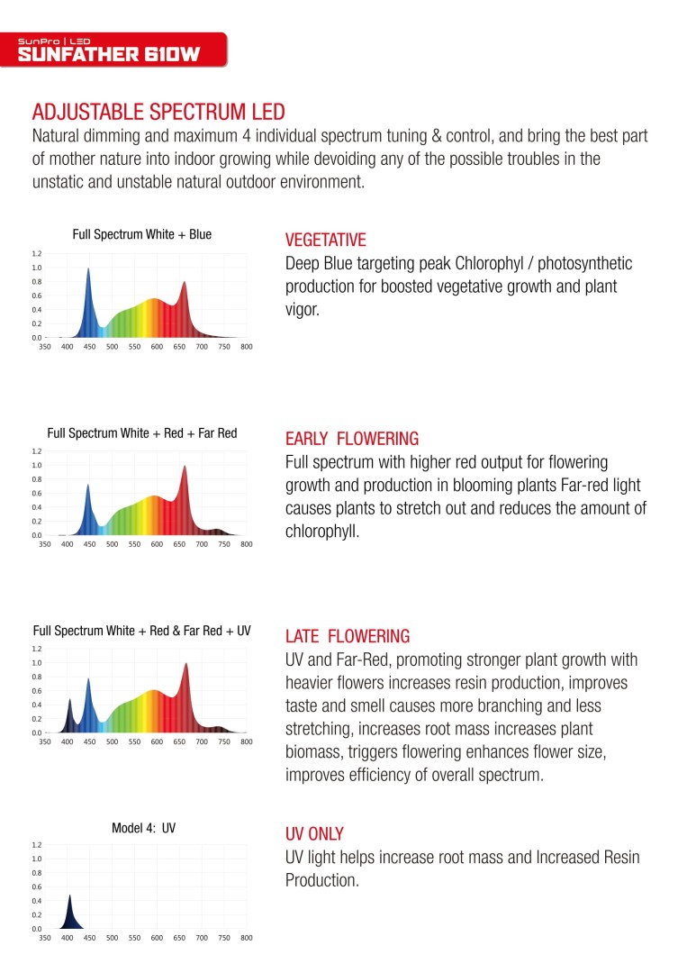 SunPro SUNFATHER 610W ist die neueste LED-Beleuchtung mit der Möglichkeit , das Lichtspektrum für verschiedene Pflanzenarten und ihre unterschiedlichen Zyklen einzustellen.