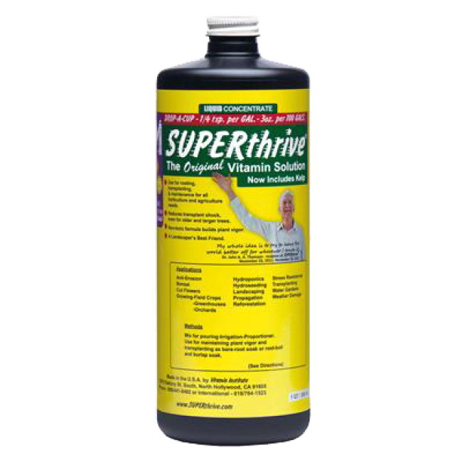 Der weltbekannte SUPERthrive ist eine hervorragende Vitaminlösung und allgemeiner Wachstumsförderer. Pflanzen benötigen für eine optimale Leistung mehr als ein Vitamin. SUPERthrive ist reich an Vitaminen. SUPERthrive ist kein Düngemittel - es ist ein Zusatzstoff. Verwenden Sie SUPERthrive bei jeder Pflanze in jeder Wachstums- oder Blütephase. Bei Zimmerpflanzen bringt es mehr neue Blüten- und Blattknospen hervor. Bei Freilandpflanzen und wurzelnackten Pflanzen setzt er neue Wurzel- und Blattwirkung in Gang. Es hilft bei der Entwicklung früherer und größerer Blüten. SUPERthrive kann bei Saatgut verwendet werden, um die Keimung zu unterstützen und frühere Gemüse- und Blumenkulturen zu erhalten. Es kann auch verwendet werden, um kranke Pflanzen wiederzubeleben oder um den Pflanzen zu helfen, sich von jeglichem Stress zu erholen. SUPEthrive wird dramatisch gesündere Pflanzen hervorbringen und hilft, sich vor Transplantationsschocks zu schützen. Dosierung: (in Wasser verdünnen) - Zimmerpflanzen, allgemeine Verwendung, Freilandpflanzen: Wöchentlich/Monatlich: 1 ml / 3 L (1 Tropfen / 100 ml) - Sämlinge - Boden feucht halten. Kann wöchentlich oder abwechselnd verwendet werden: 1 ml / 3 L - Samen/Knollen: Je nach Größe und Typ 15 Minuten oder länger in 1 ml / 3 L einweichen. - Zarte, kleine Pflanzen: Nur 1 Tropfen pro 4 L - Blattspray: 15 ml /10 L. Beide Seiten der Blätter zur vollständigen Absorption besprühen - Hydrokultur: 0,3-1,3 ml / 3 L beim Wechseln oder Hinzufügen von Wasser - Hydrosaat: 1 ml / 25 L - Umpflanzungen: 13 ml / 10 L - Rasen und Rasenflächen: 65 ml / 200 L für ca. 150 sq. Ft - Bäume & holzige Pflanzen: können 1 ml / 3 L wöchentlich oder monatlich verwenden. - Besonders pflegebedürftige Bäume: 10-15 ml / 10 L - Weihnachtsbäume (Innenbereich) : Mit 1 Tropfen pro 100 ml in Wasser im Baumbestand frisch halten - Für Bäume (Outdoor): 1 Tropfen pro 100 ml in Wasser auf den Boden alle 3 bis 4 Tage