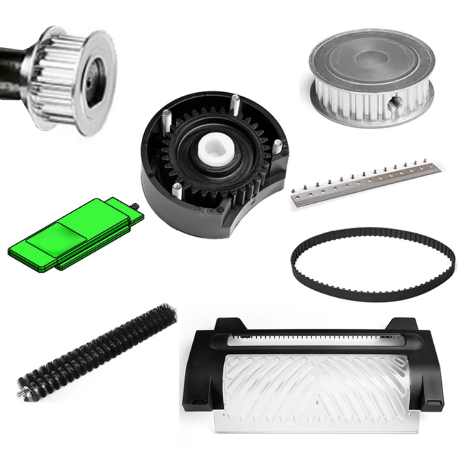 Twister T6, Ersatzteil-Set 1x BED KNIFE, T6 1x PULLEY, HELIX DRIVE, T6 1x PULLEY, MOTOR DRIVE, T6 2x BELT, DRIVE T6 1x BRUSH, NYLON, T6 1x LID, ASSY, BRUSHLESS, ROLLERLESS, T6 2x GEAR BOX, ASSY, T6 1x LID SLIDER, ASSY, T6
